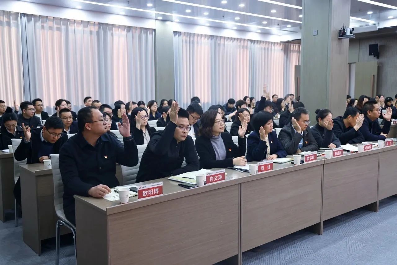集团领导徐强、胡智勇、陈剑屏、陈启红、李江涛、谭勇、王锦林,总助总监、董事会秘书及集团总部全体共产党员、部分员工代表参加会议。