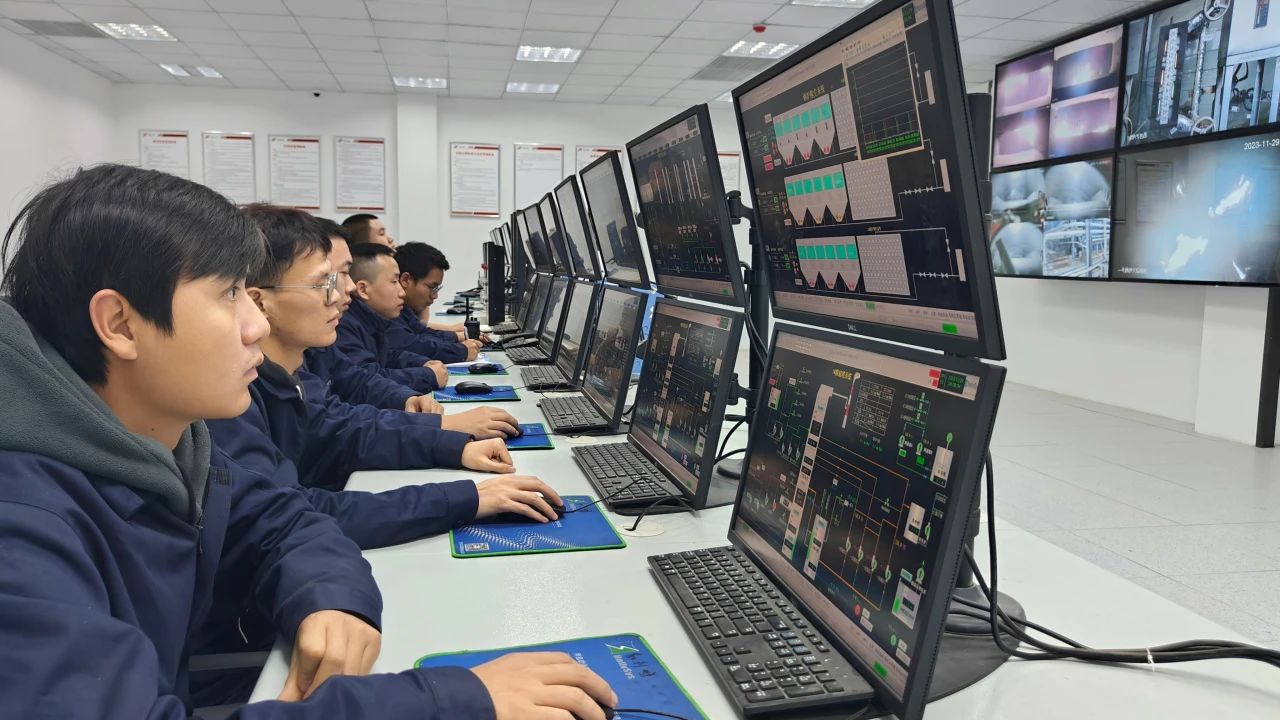 11月29日,白洋供热中心中控室内,值班长裴晶晶通过集中控制系统打开供汽管道阀门,由锅炉生产的高压高温蒸汽顺着管道输送至隔壁的湖北宜化氨醇项目。